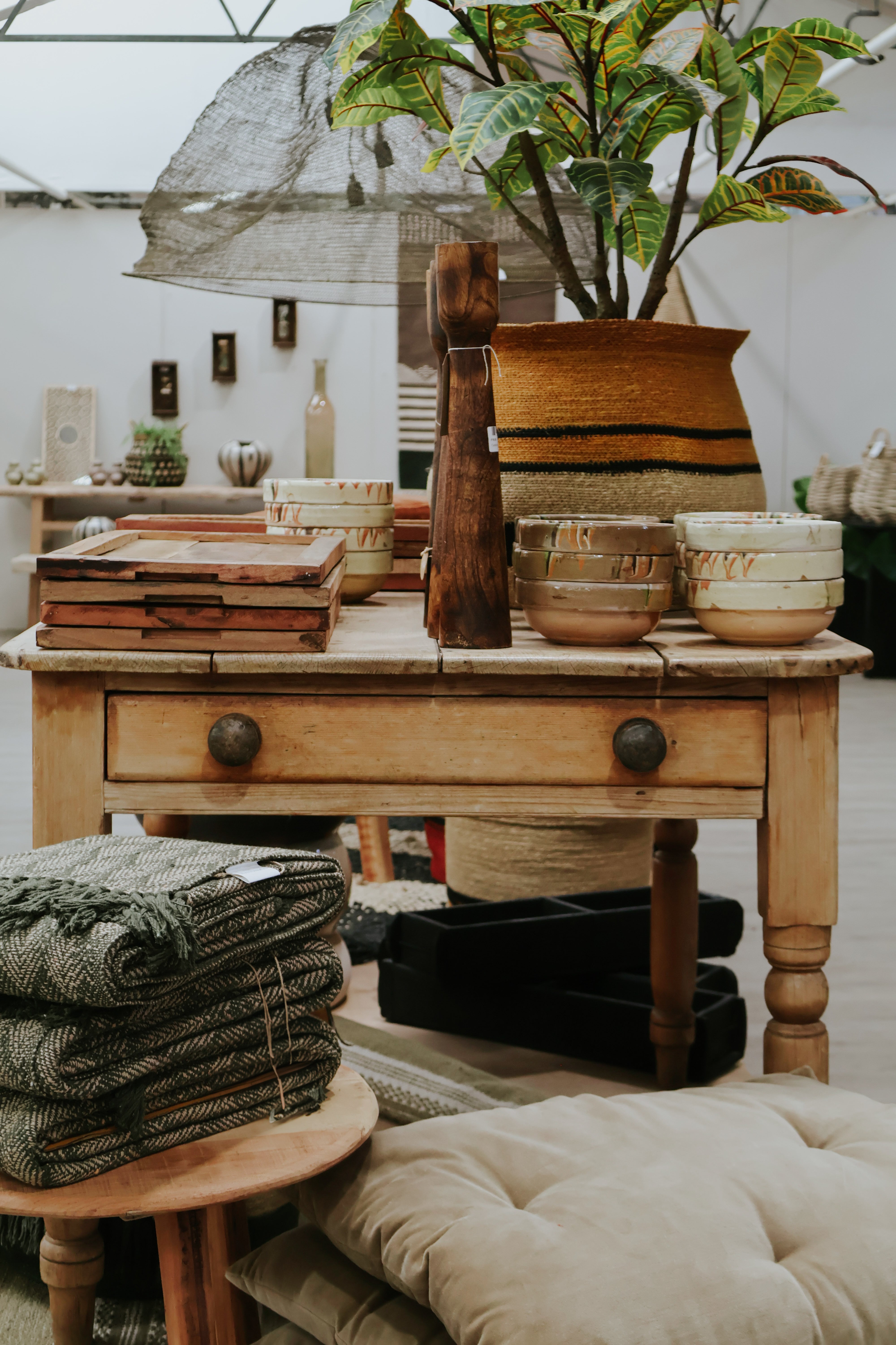 We love interiors, as well as our gardens. Our carefully selected furniture and home lifestyle range is ever changing. Discover unique pieces to dress your home; complete your dining room with crockery sets, place-mats and glasses. Are you looking for a statement piece of furniture? Or you might be after a smaller side table or cabinet to complement your existing room. Our soft furnishing department is full of earthy rugs, patterned cushions and rustic baskets for your every need.