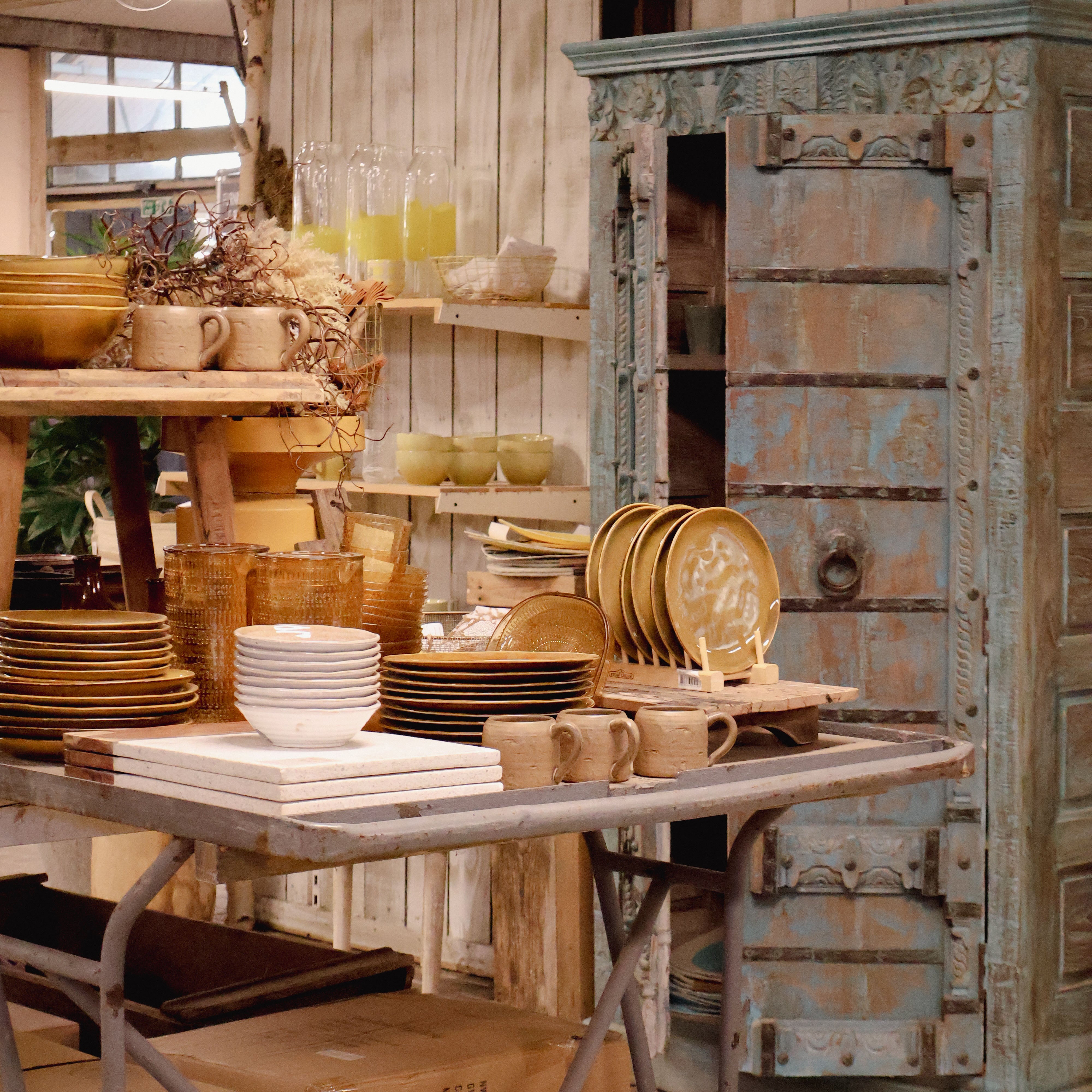 We love interiors, as well as our gardens. Our carefully selected furniture and home lifestyle range is ever changing. Discover unique pieces to dress your home; complete your dining room with crockery sets, place-mats and glasses. Are you looking for a statement piece of furniture? Or you might be after a smaller side table or cabinet to complement your existing room. Our soft furnishing department is full of earthy rugs, patterned cushions and rustic baskets for your every need.